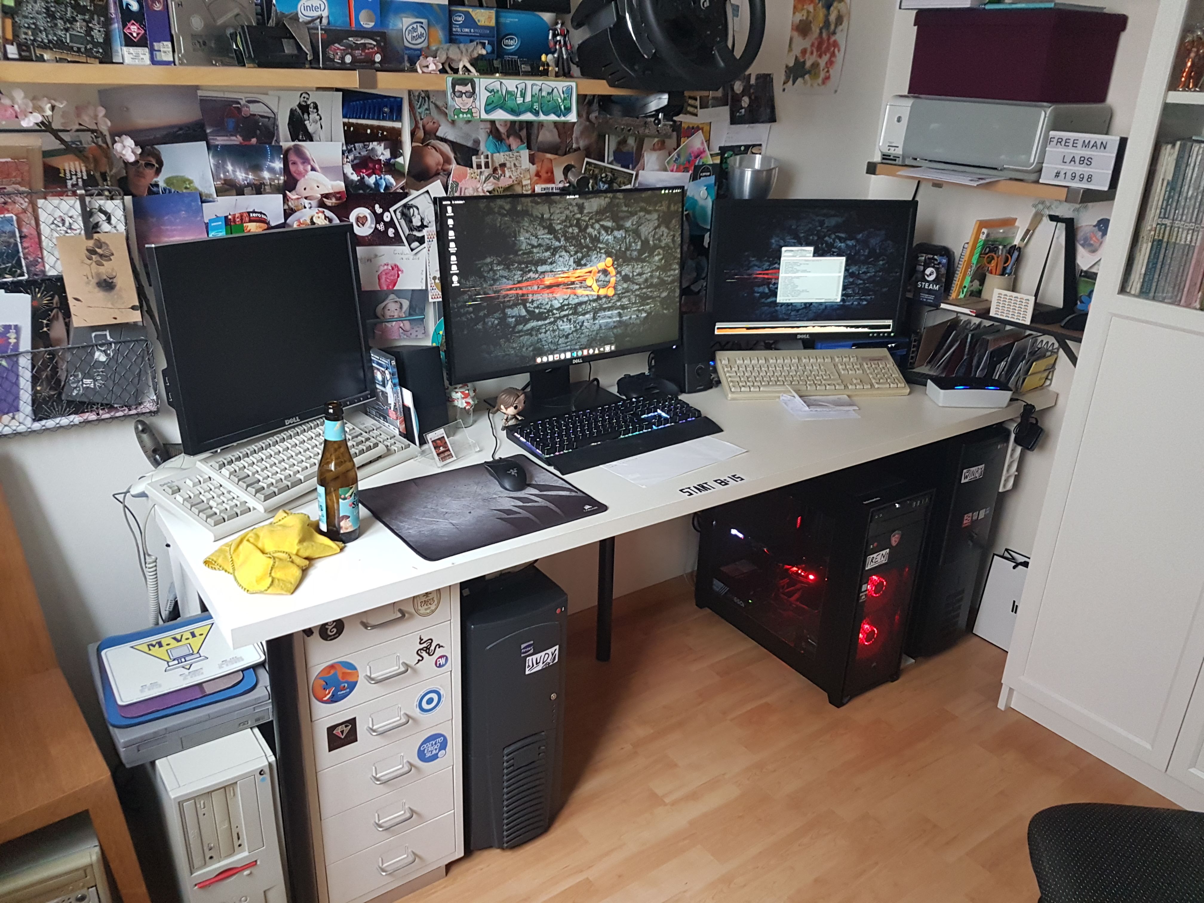 Les machines à droite du bureau : i7 7700k et Core 2 Duo 6600.